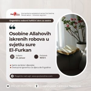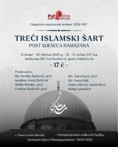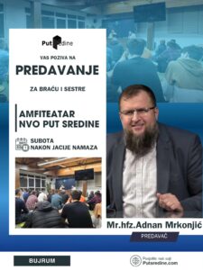 U subotu veče (sutra), nakon jacije namaza, imaćemo čast da ugostimo našeg uvaženog šehja mr.hfz.Adnana Mrkonjića koji će nam održati korisno predavanje u Amfiteatru HEC Put Sredine.