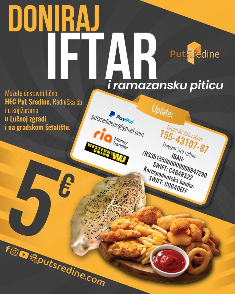 Pokrećemo akciju prikupljanja sredstava za podjelu iftara za naše socijalno ugrožene sugrađane, jetimske porodice i za sve koji su u potrebi.