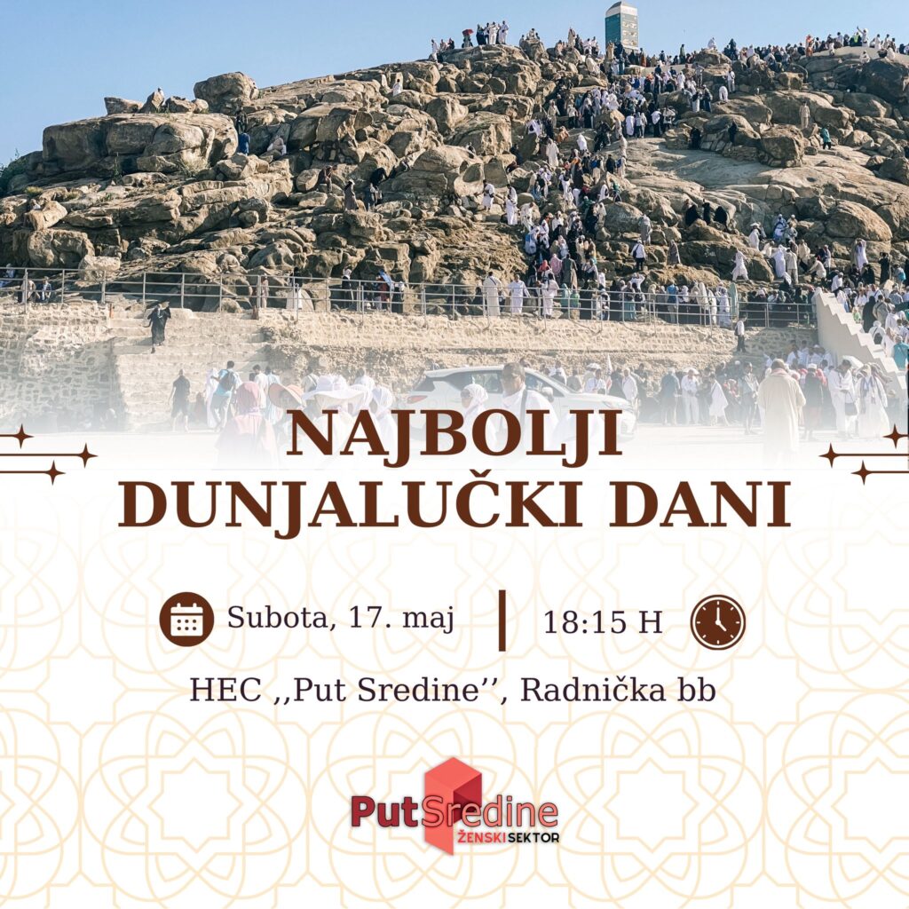 Zajedno dočekajmo najbolje dane dunjaluka ispunjeni znanjem, zikrom i duhovnom blizinom.