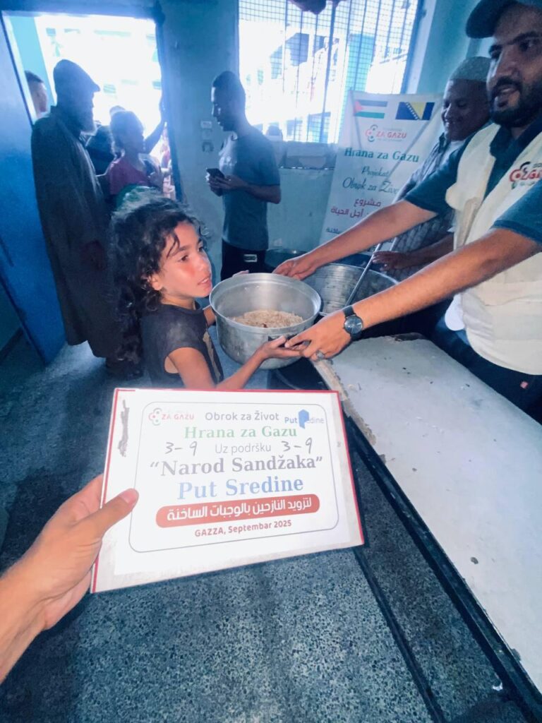 Hvala Allahu dž.š. hrana se sprema i dijeli se u Gazi, podjela se nastavlja i dalje. InshAllah svakodnevno će se pripremati i distribuirati obroci kao i pijaća voda.