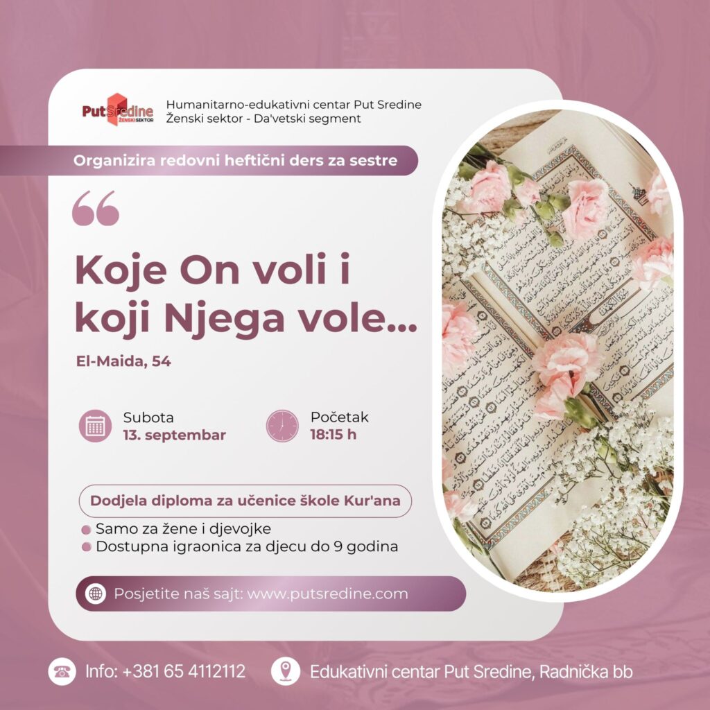Posebna radost ovog susreta bit će dodjela diploma za učenice Škole Kur’ana.🎓