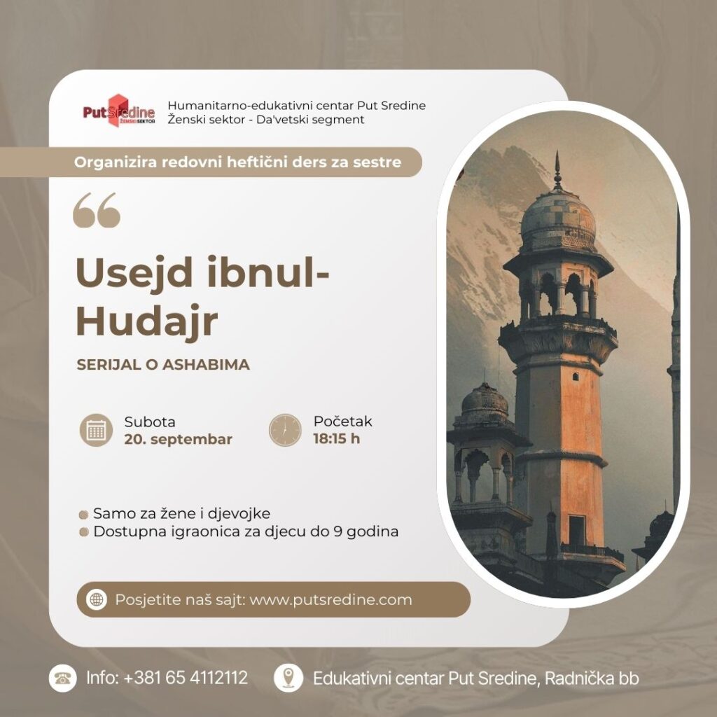 Ove subote družimo se kroz predavanje o plemenitom ashabu Usejdu ibnul-Hudajru, r.a.