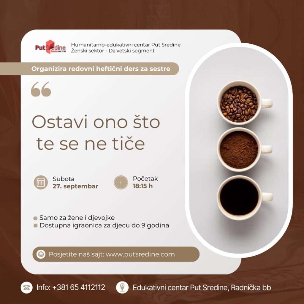 Drage sestre, pozivamo vas na redovni heftečni ders u organizaciji ženskog sektora HEC Put Sredine.