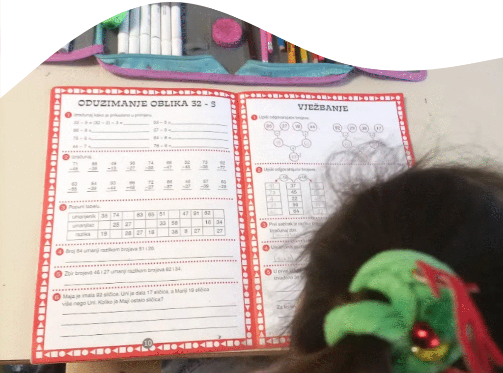 Za najmlađe školarce organizovana je svakodnevna pomoć u izradi domaćih zadataka i dodatno objašnjavanje gradiva. Cilj je da dijete u sigurnom i podsticajnom okruženju razvije samopouzdanje, radne navike i osjećaj odgovornosti.